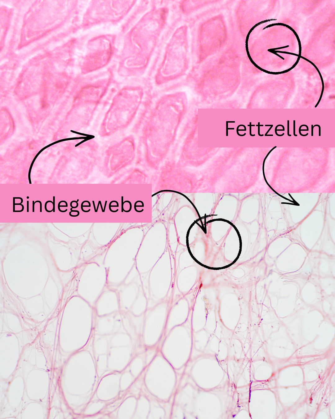 Die Bindegewebsfasern von Frauen verlaufen eher senkrecht (wie bei einer Bienenwabe), bei Männern eher netzartig. Dadurch können sich Fettzellen bei Frauen leichter nach außen drücken.